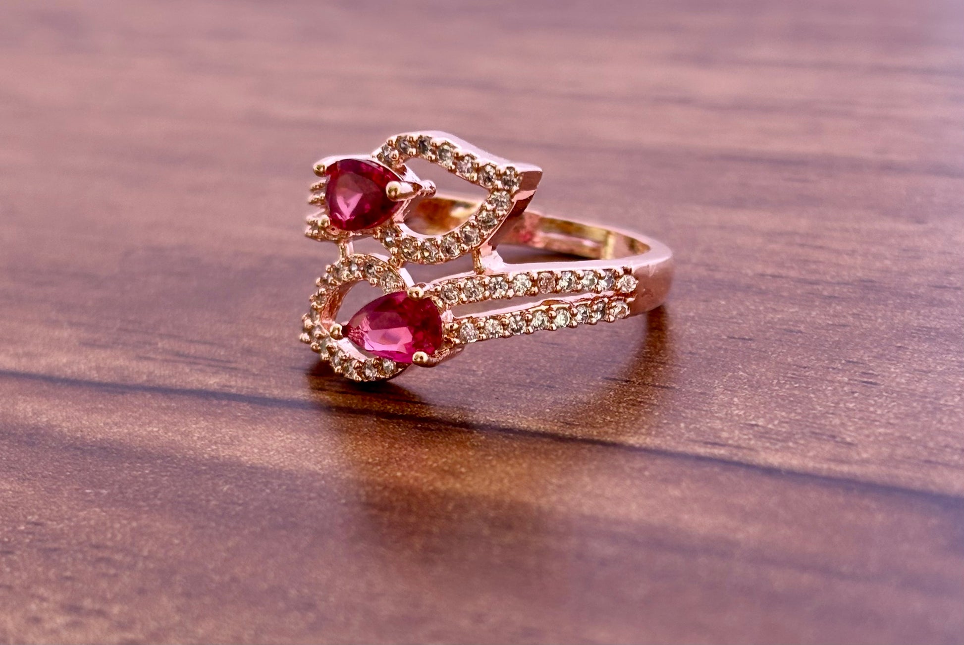 Graceful CZ Earrings with Ruby Teardrops